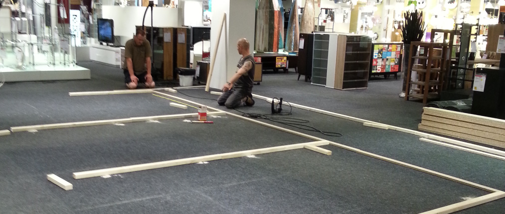 Sie können auf uns zählen: Von der Montage der Musterwände bis hin zum Verräumen Ihres Sortiments.